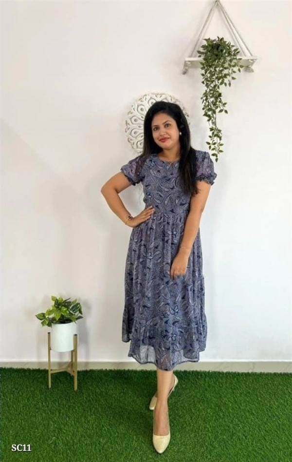Georgette middi one piece dress. inner side heavy cotton lining attached.. heavy quality one piece dress..